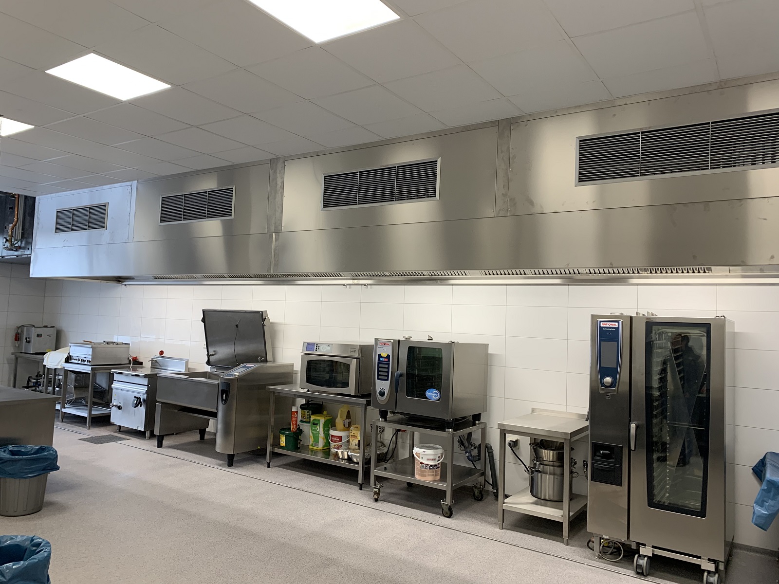 Dunstabzugshaube mit einer Länge von 10 m und beheizte Zuluft für Katinenküche